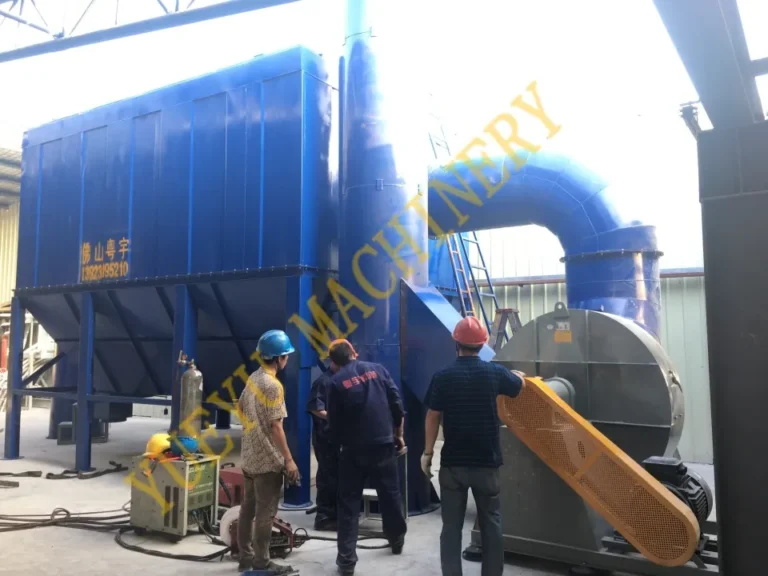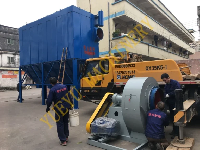 Solution: Yueyu fiberglass centrifugal fan with bag filter for efficient dust collection.